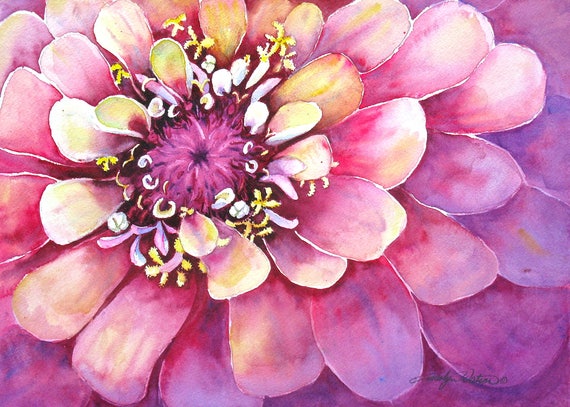 Original Watercolor Painting Zinnia Flower 10x14 Etsy