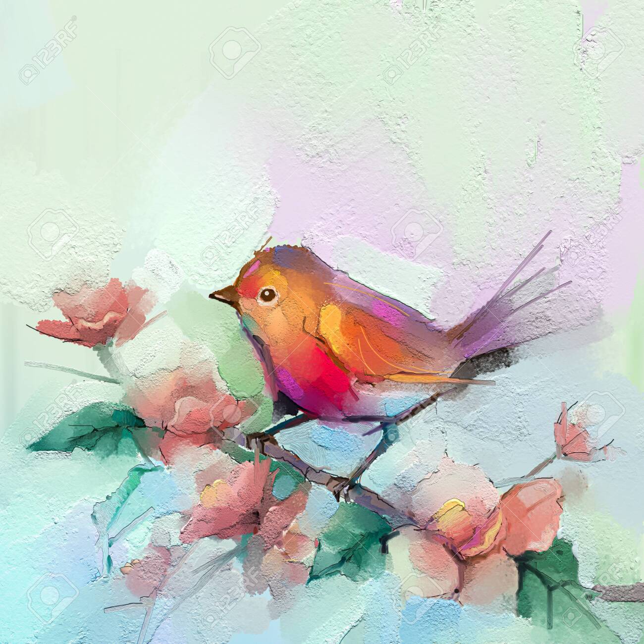 Abstract Colorful Oil Acrylic Painting Bird Spring Flower Modern Art Stock Photo Image By C Nongkran Ch 349504304