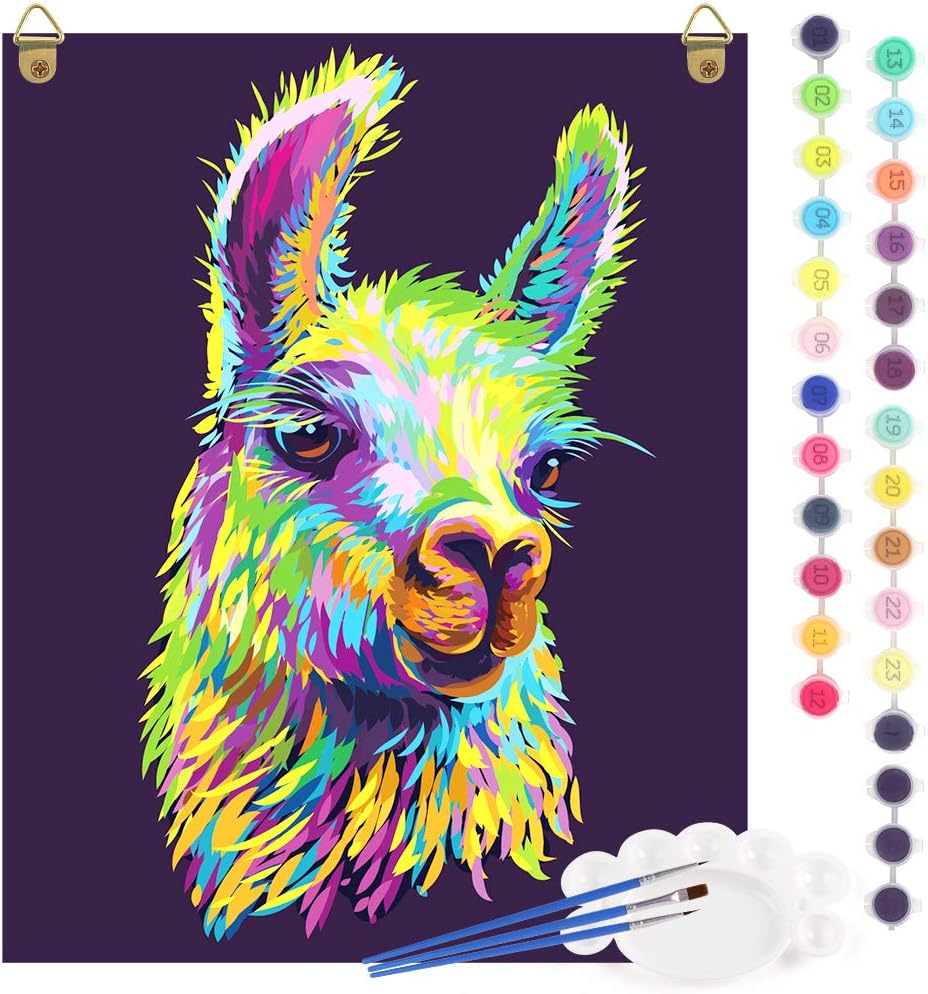 Amazon Com Diy Oil Painting Kit 16 X 20 Inch Paint By Numbers Canvas And Acrylic Paints Animals Painting For Adults Kids Beginner Diy Craft Project Home Living Room Decor Alpaca