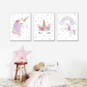 Cartoon Rainbow Unicorn Feather Wall Art Canvas Painting Nordic Posters And Prints Wall Pictures Kids Room Girl Room Wall Decor Painting Calligraphy Aliexpress