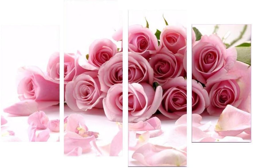 Amazon Com Dysly Oil Painting Mural Wall Art Aesthetic Inkjet Decorative Four Linked Pink Rose Without Frame Oil Painting Paintings