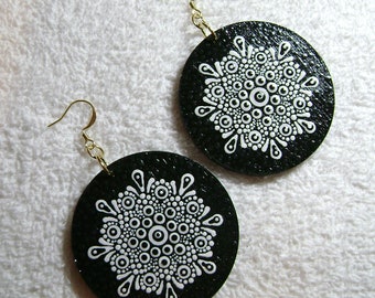 Mandala Earrings Hand Painted One Of A Kind Sterling Silver Wooden Earrings Boho Earrings Sacred Geometry Hand Painted Jewelry Hand Painted Earrings Mandala Jewelry