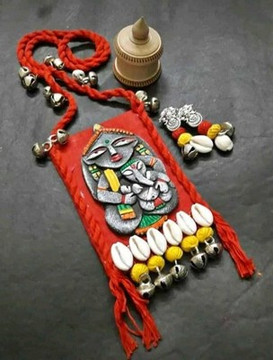 Tribal Elephant Hand Painted Hand Embroidered Earrings Krafted With Happiness