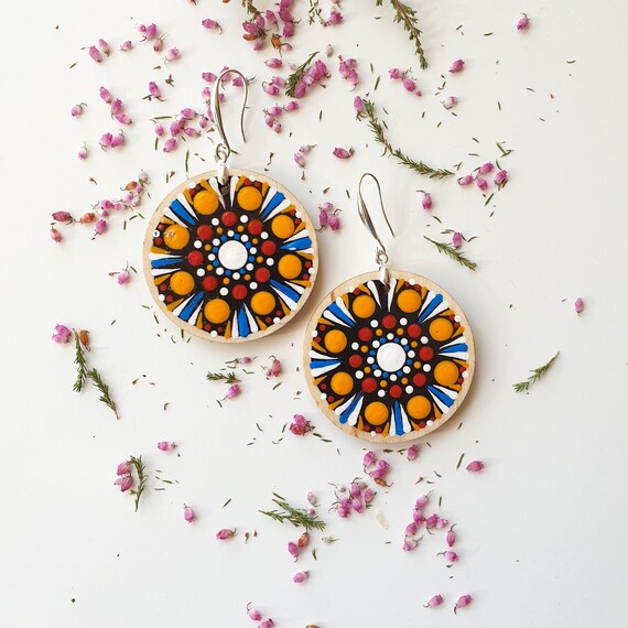 Mandala Earrings Mandala Jewelry Dot Painting Tools Hand Painted Jewelry