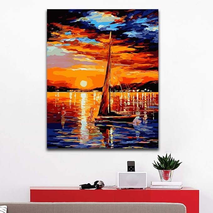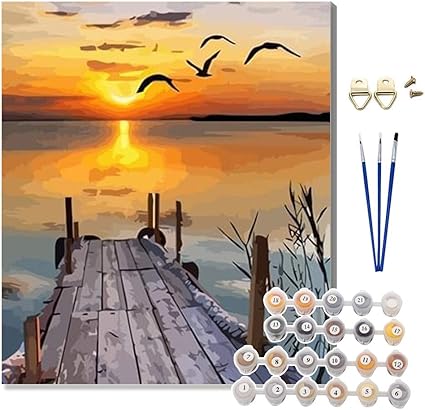 Amazon Com Diy Paint By Numbers For Adults Beginner Seaside Scenery Sunset Oil Paint By Number Kit For Kids On Canvas With Brushes And Acrylic For Home Wall Decoration 16x20 Inch